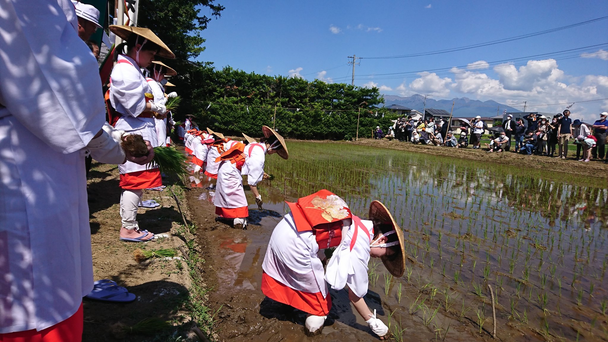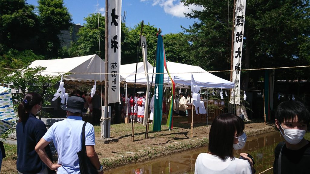 お田植えの神事が行われました。早乙女の親御さんの笑顔が印象的でした。