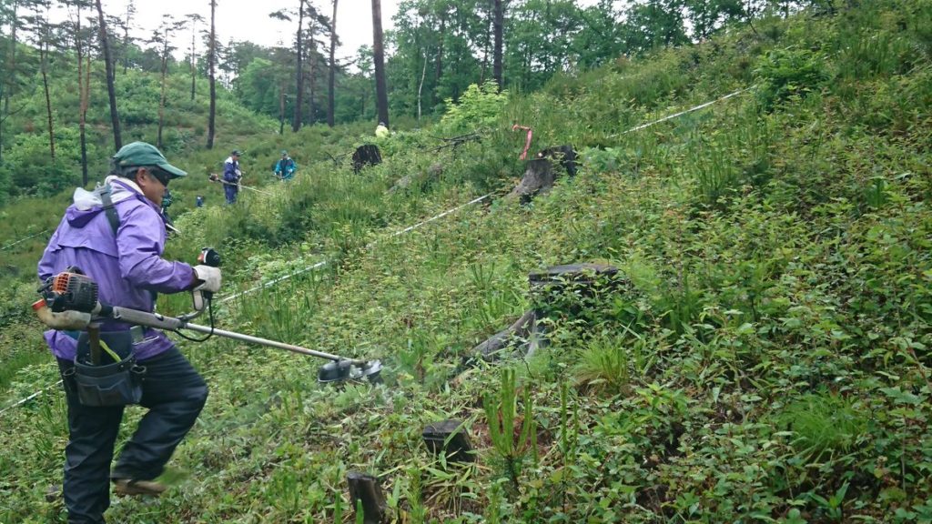 本日雨降りの中、守屋山の森林下草刈り作業が行われました。