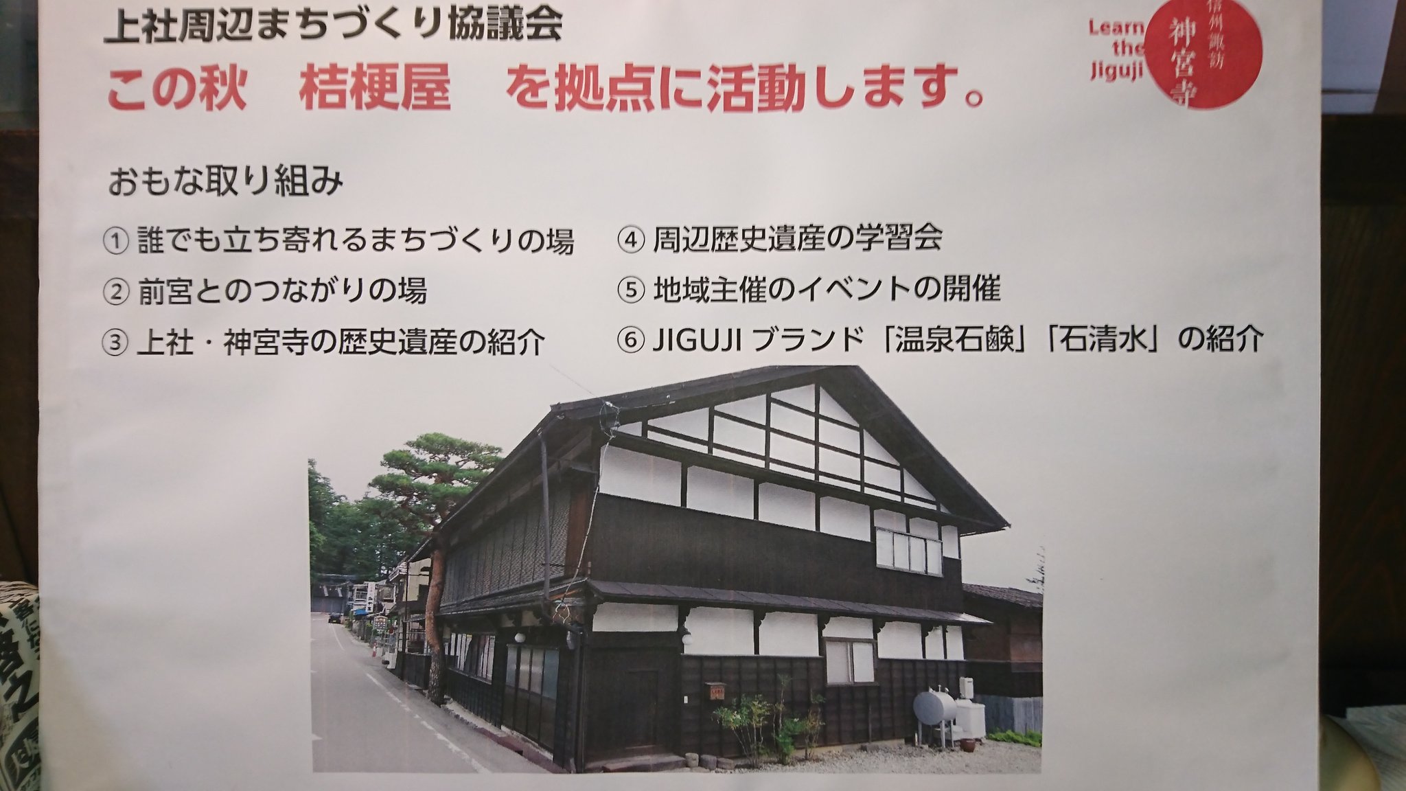 本日桔梗屋さんにて上社周辺まちづくり協議会では活動拠点、看板等について協議されました。