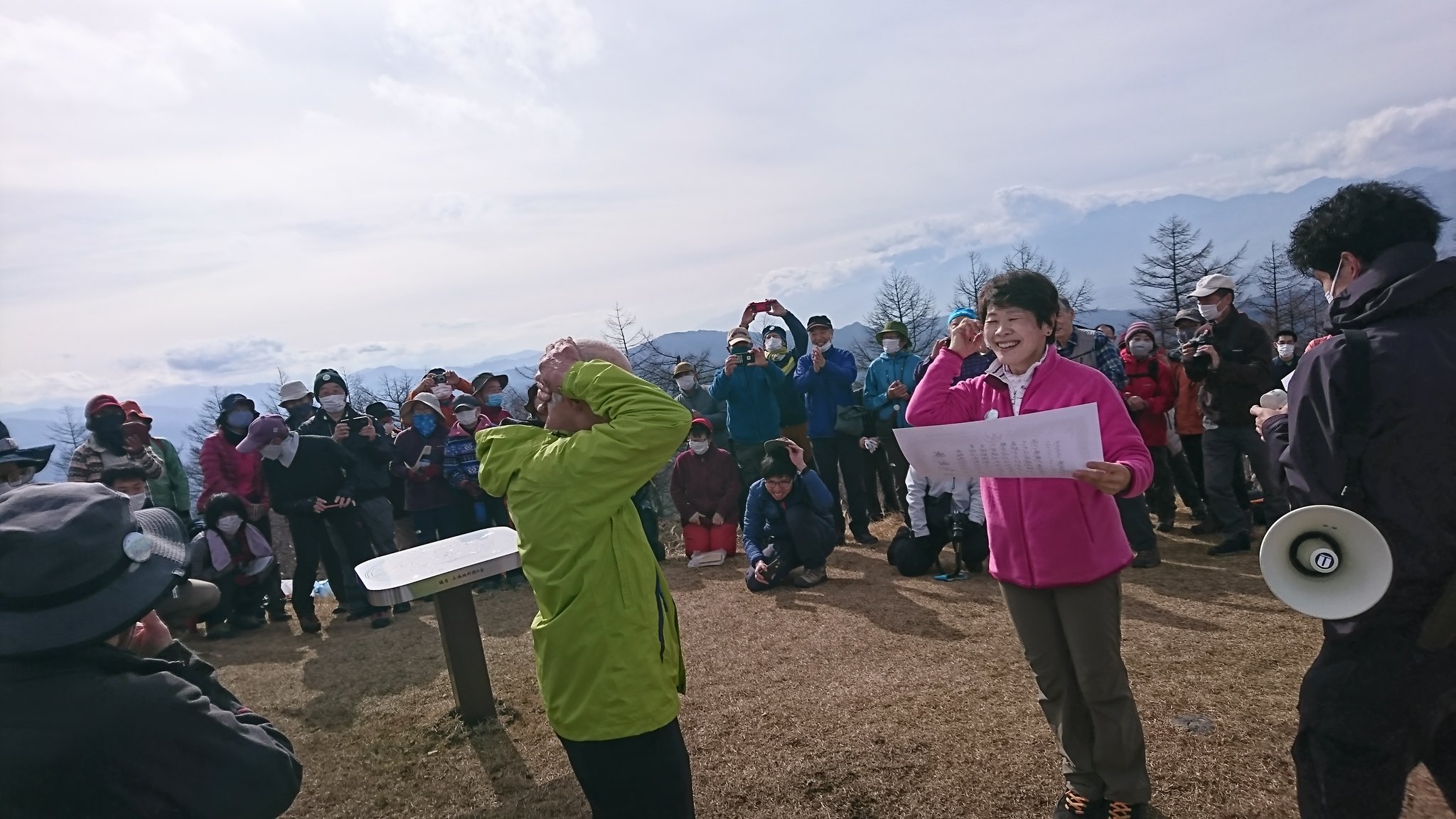 11月21日、守屋山山岳方位盤除幕式が開催されました。山頂から溢れんばかりの登山者の皆様で賑わい大変盛り上りました。ご尽力頂いた関係者皆様に感謝申し上げます。