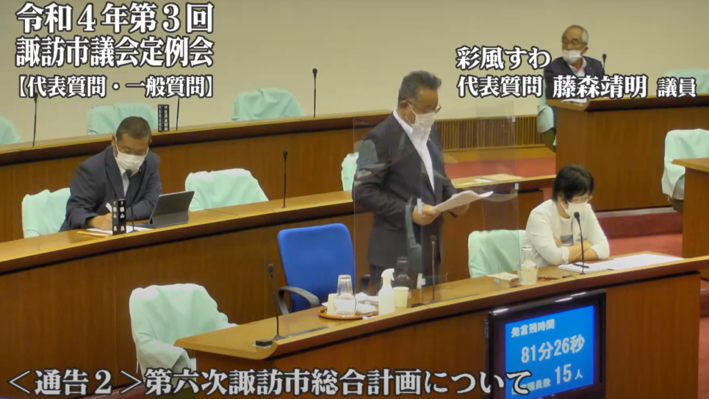 令和4年6月諏訪市議会定例会にて代表質問を行いました。