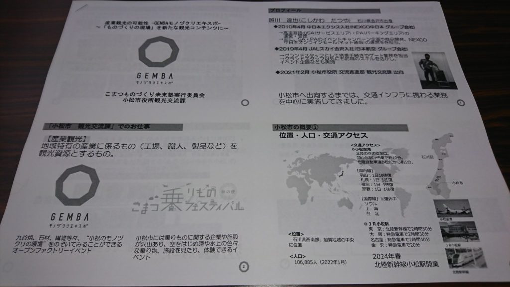 2月6日、諏訪市役所にて開催された「観光ひらめきセミナー」を受講しました。石川県小松市でのものづくりの現場を新たな観光コンテンツにした取り組みは大変興味深いものでした。また、第二部の「いますぐはじめる観光のデジタル化」ではインバウンドを受け入れるにもデジタルツールの活用が重要・急務であると感じました。 FacebookXBluesky