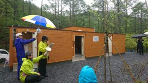雨降りの合間に各戸配布、諏訪大社上社北参道等の植え込みが出来ました。