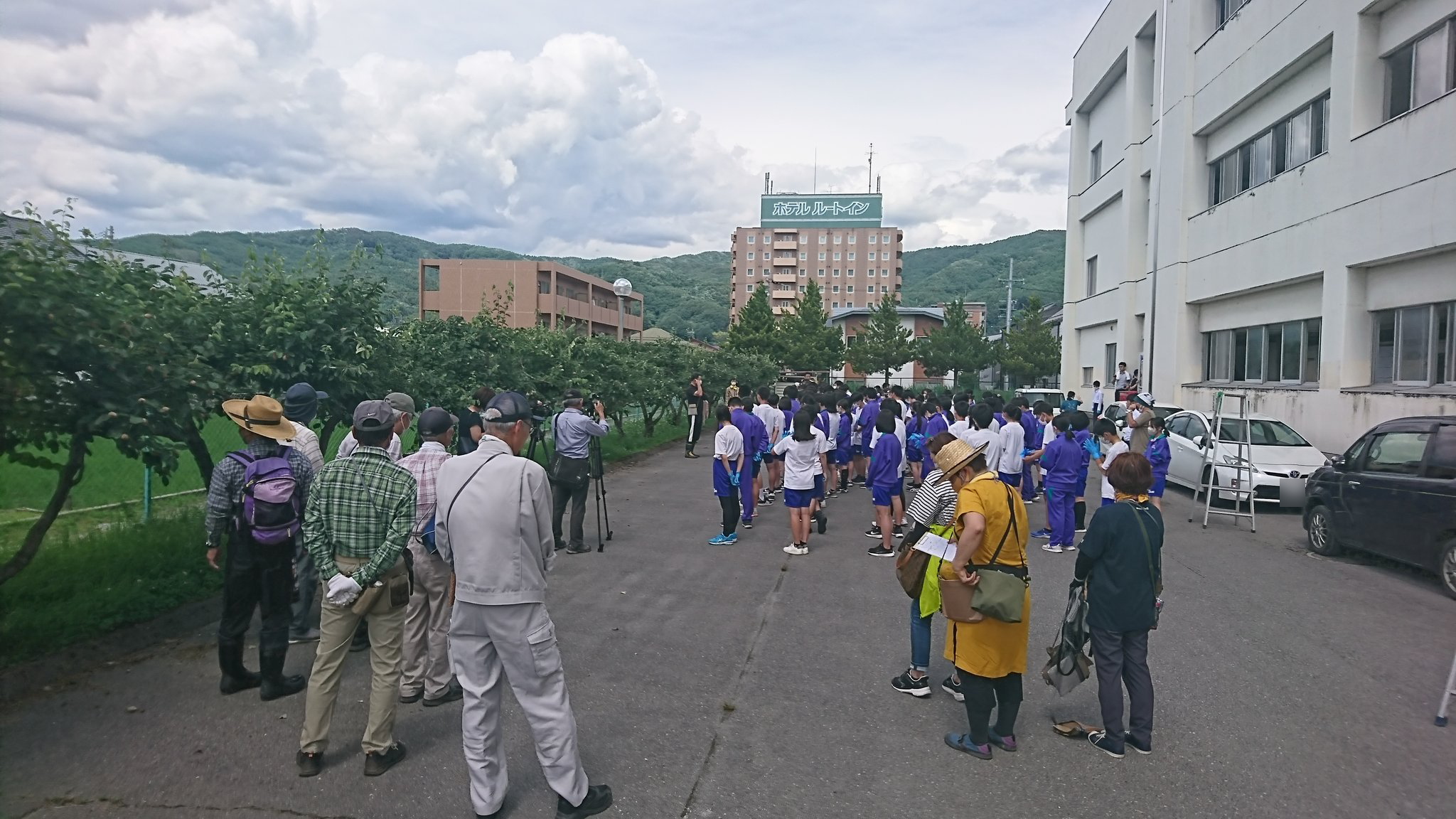 6月28日、諏訪南中学校にて、カリンの摘果袋掛け作業のお手伝いをさせて頂きました。二年生の皆さんと作業しましたが、生徒のてきぱきした様子には驚きました。