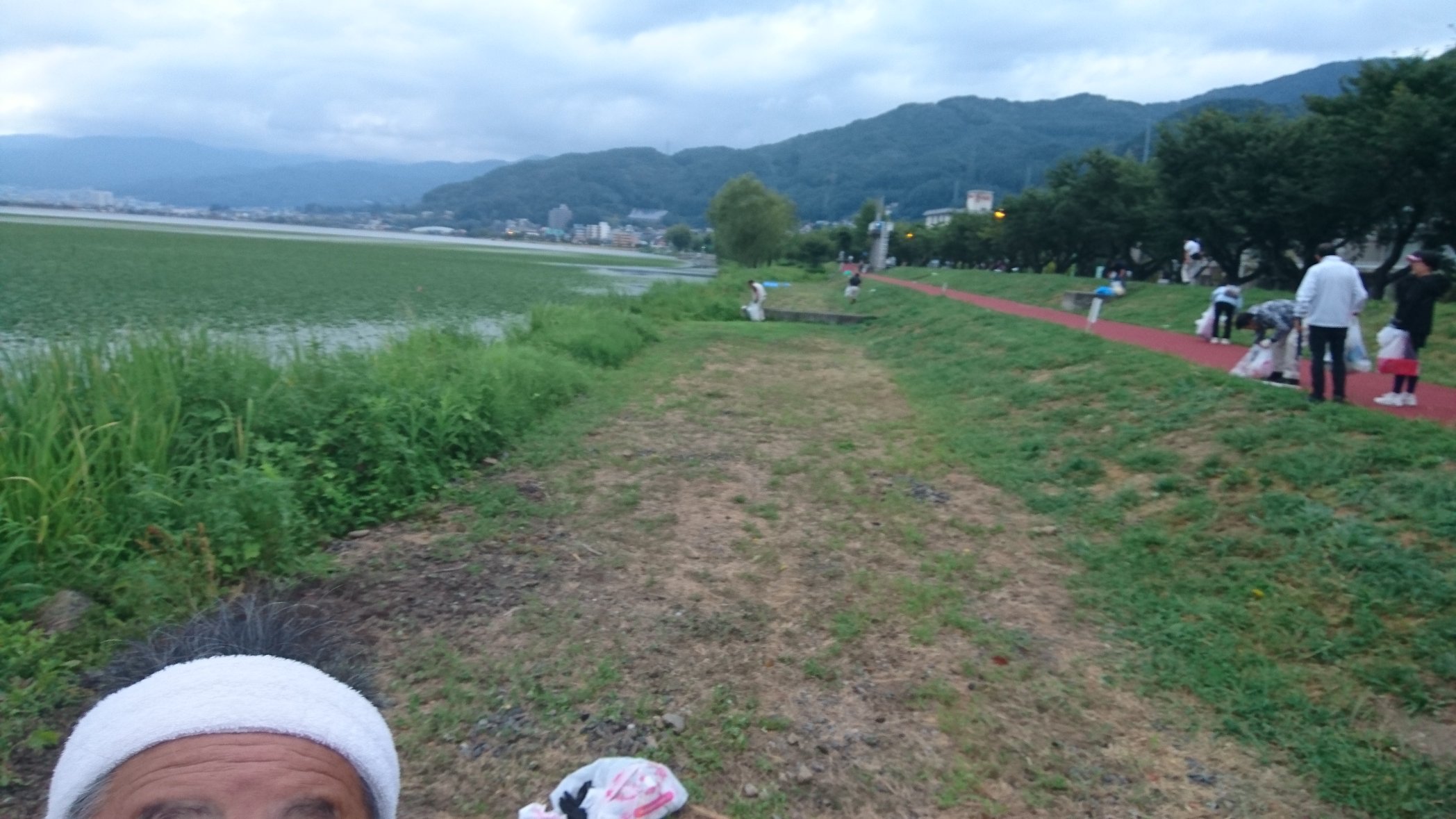 8月16日、早朝より行われた湖岸のゴミ清掃では前回よりもゴミの量は少ないように感じました。