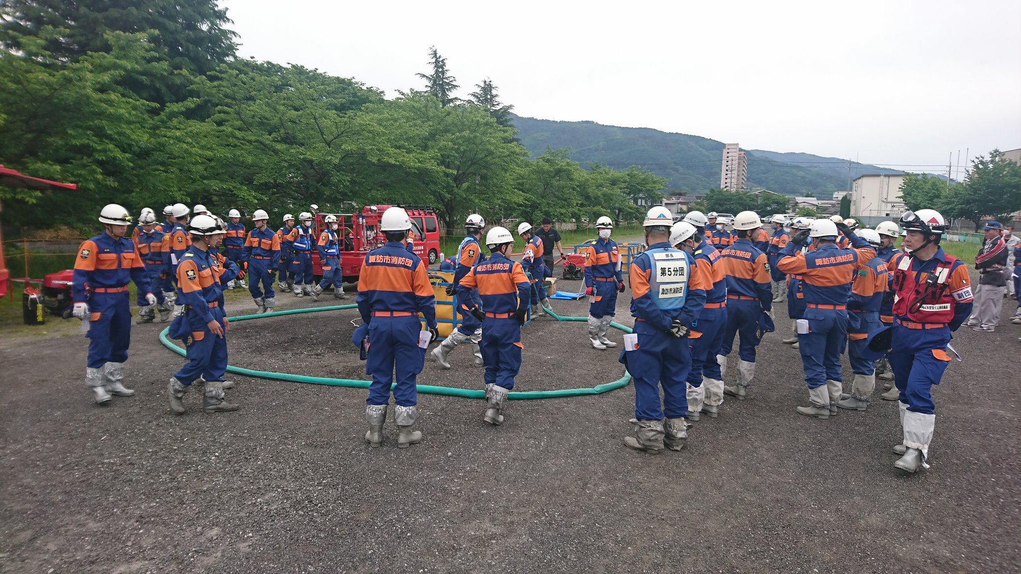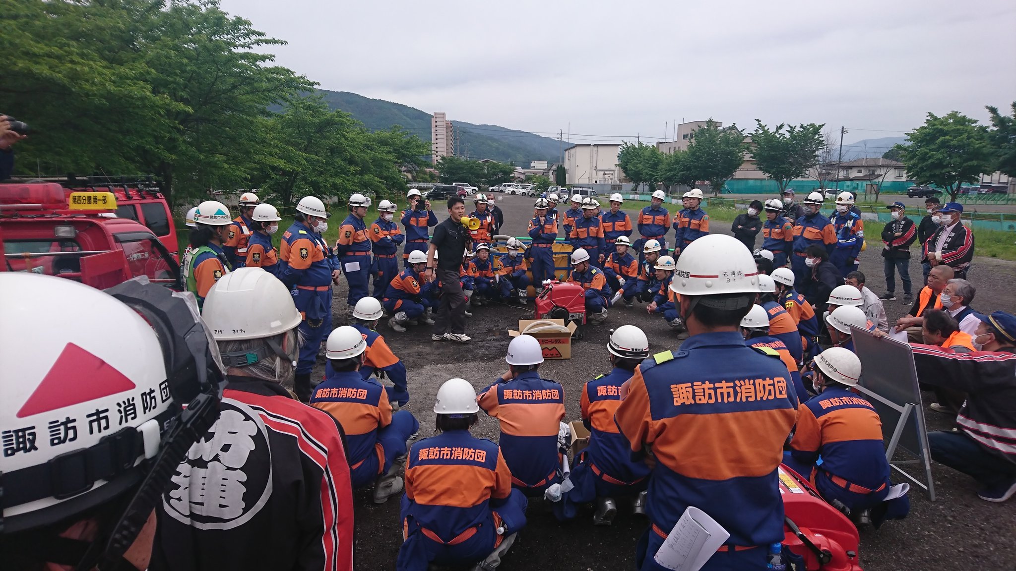 5月19日、諏訪市消防団の水防訓練に参加しました。出水期前の訓練に取り組む団員の姿勢が大変印象的でした。