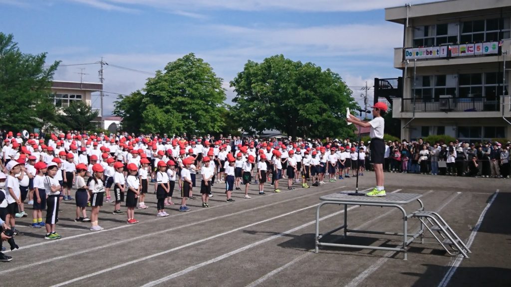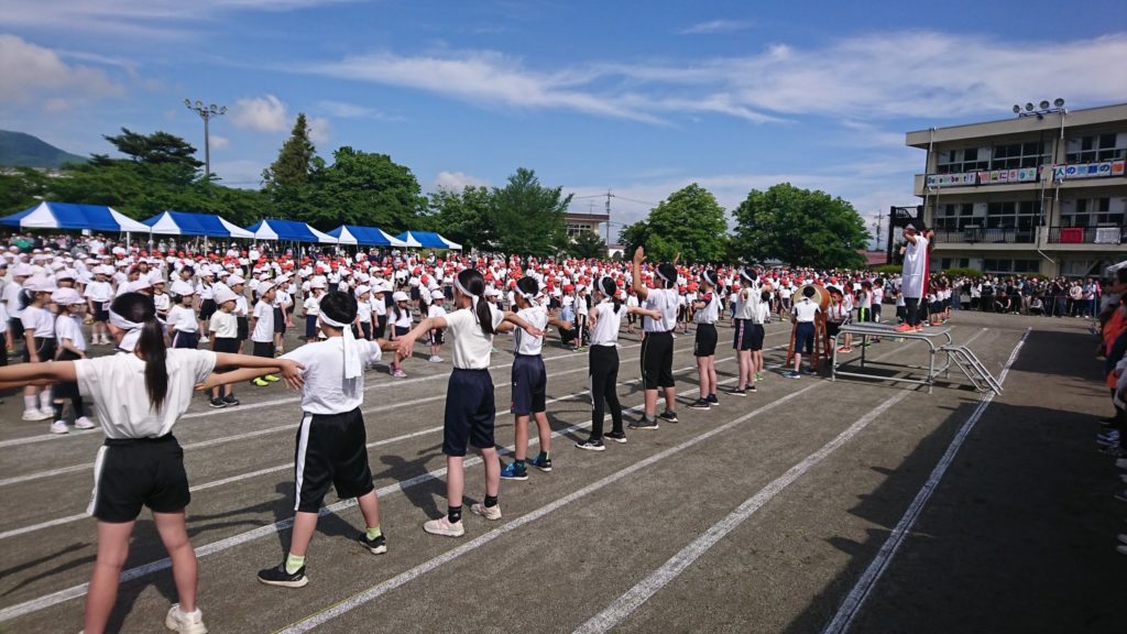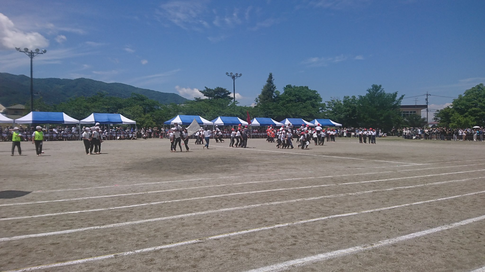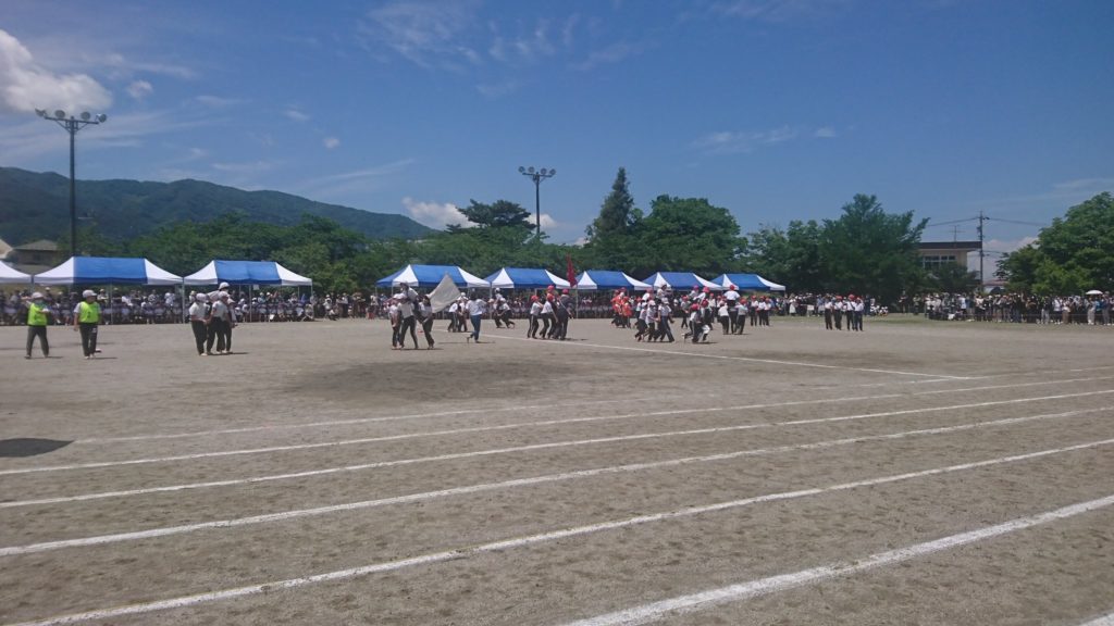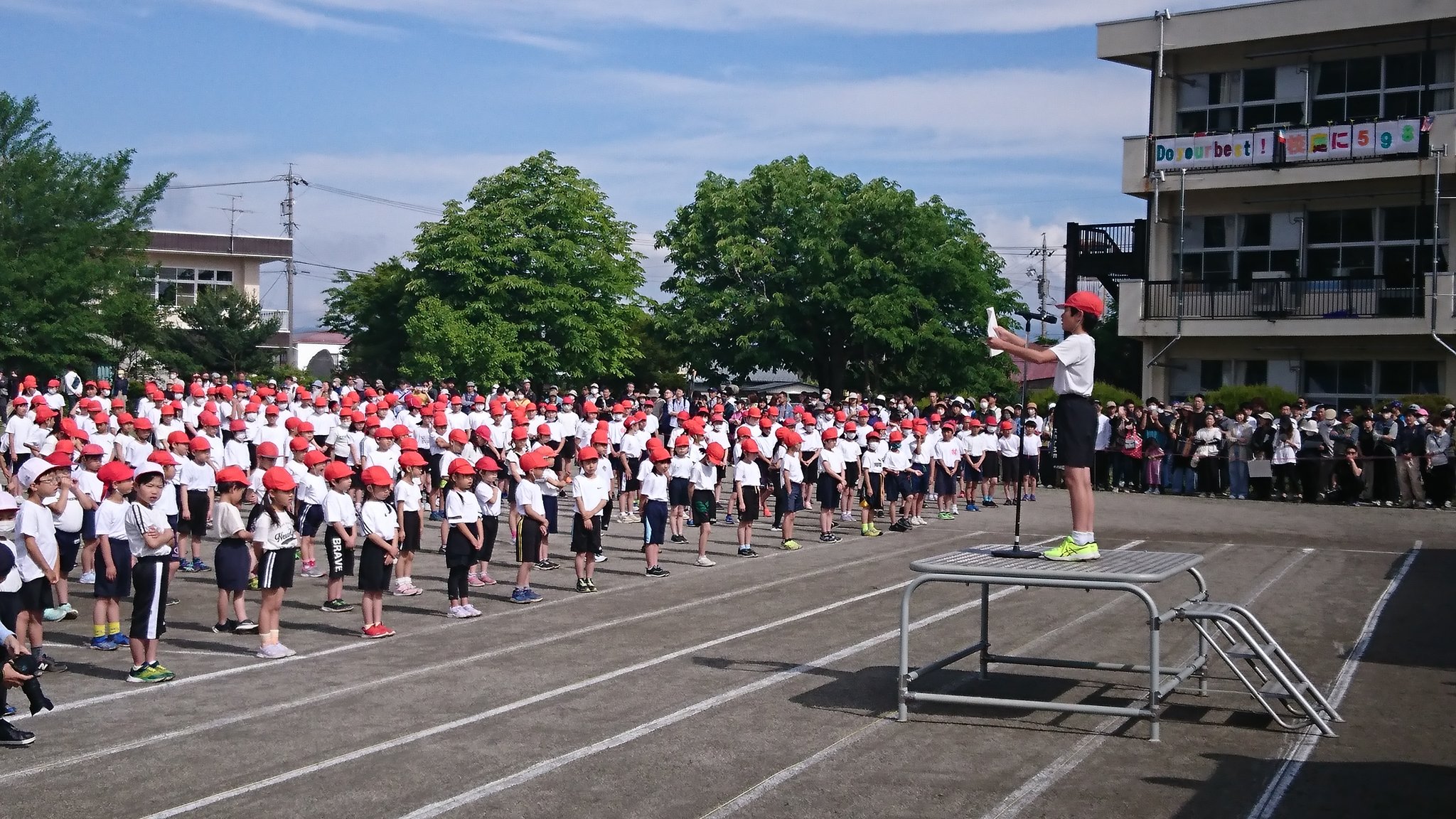 6月1日、中洲小学校運動会に参列させて頂きました。 気持ち良い青空の下、598名の児童がそれぞれの競技に全力を尽くしていました。