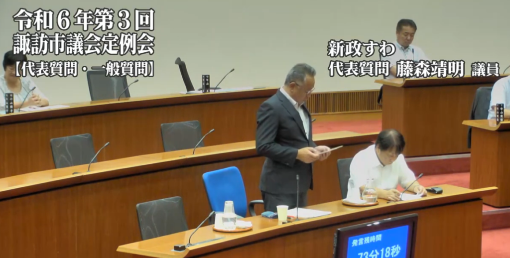令和6年9月諏訪市議会定例会にて代表質問を行いました。