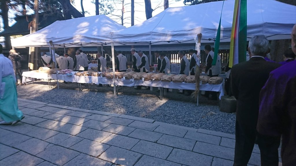 11月23日、諏訪大社上社の新嘗祭に耕作奉賛会の会員として参加しました。奉納された耕作物は全て良いものでした。