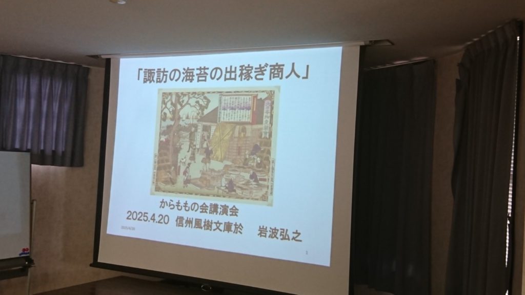 4月20日、諏訪市立信州風樹文庫運営委員会主催の「”からもも”の会報恩法要」と講演会に出席しました。