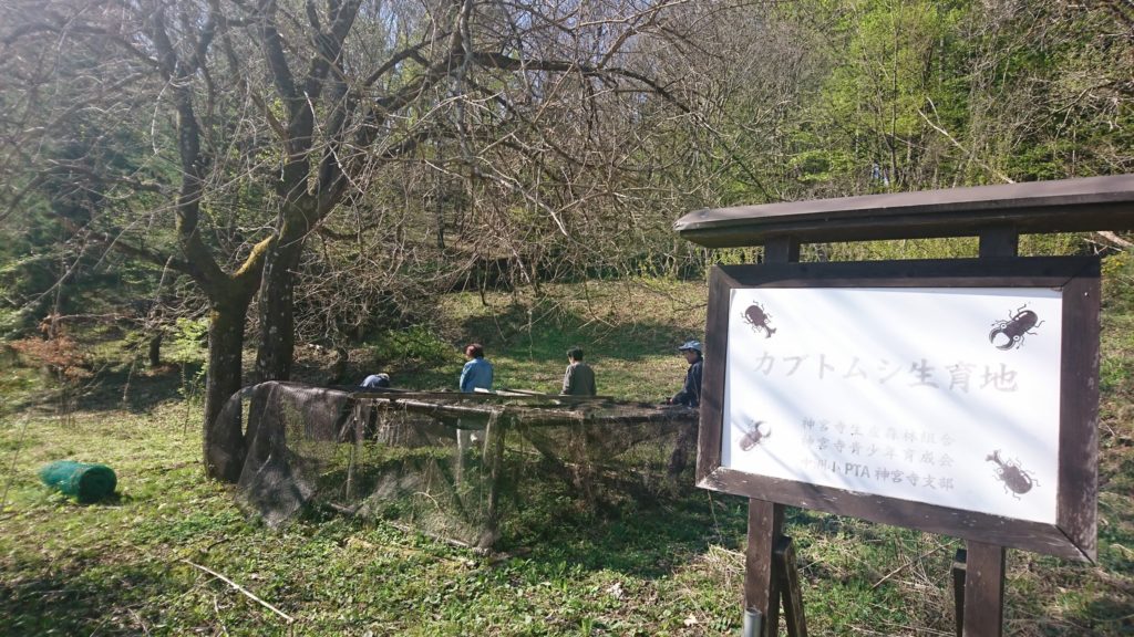 4月26日、神宮寺里山委員会のカブトムシ生育地整備に同行させて頂きました。腐葉土の中からは立派な幼虫が…。今後が大変楽しみです。