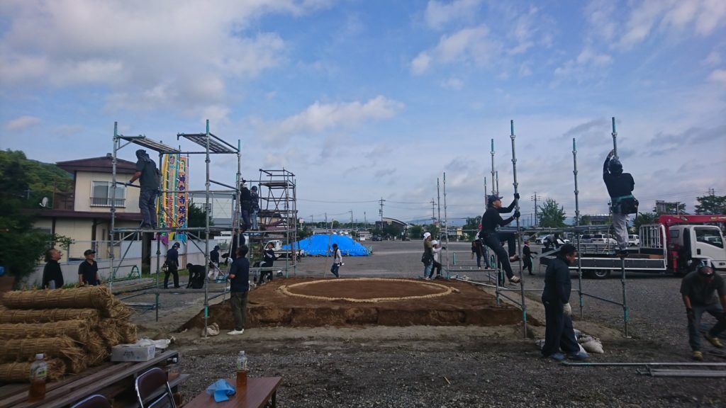 8月17日、神宮寺十五夜奉納相撲に向け、辻築(土俵作り)が行われました。9月15日の本番に向け力士の皆様、保存会、関係者の皆様宜しくお願い致します。