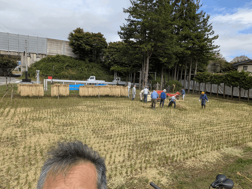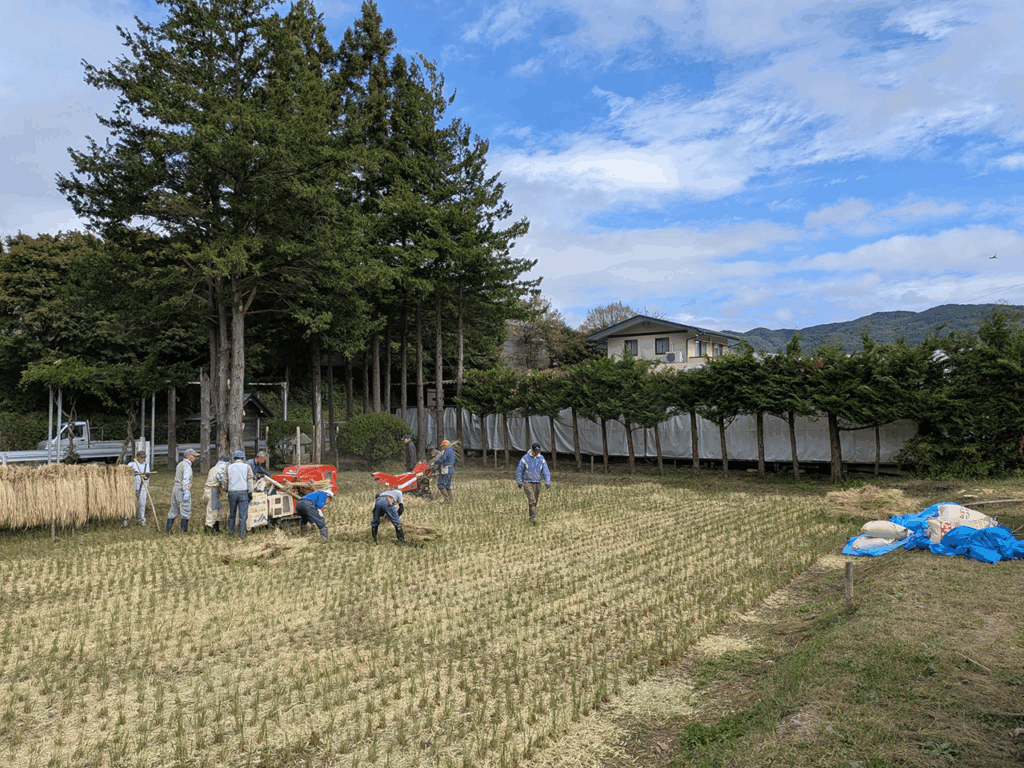 10月5日、諏訪大社上社の御斎田において脱穀作業が行われました。天候を考慮し青空のあるうちに作業終了となりました。今年の稲穂はその丈が長いとのことです。