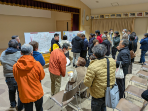 12月11日、第4回「街なみ環境整備事業ワークショップ」が地元公民館にて開催されました。 およそ70名の参加者の中、金子市長にも駆けつけて頂き、ホールは大変盛り上がりました。 皆様の想いが形になる事を期待します。