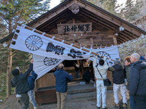 2026年1月22日、墨縄神社太子講新年例祭が行われました。 近隣地区の職人を主とする会員の皆様が集まり1年の安全祈願を執り行いました。 祭壇には差し金を作ったとされる聖徳太子の御本尊様が祀られました。