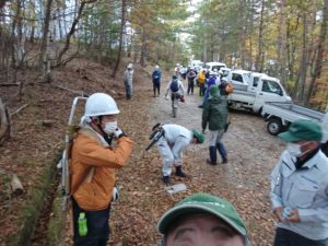 10月31日、大熊、田辺、神宮寺の3地区境回りを行いました。生憎の小雨も混じるなか守屋山登山をされる方の多さに驚きました。